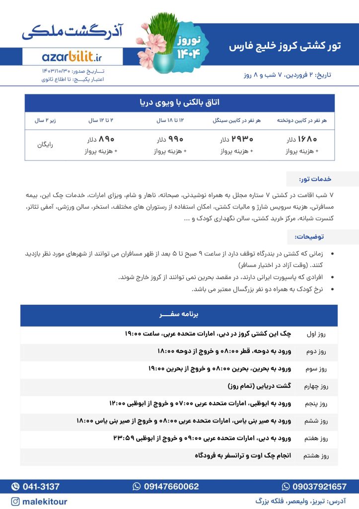 مجله گردشگری آذربلیط - پکیج تور - تور کشتی کروز خلیج فارس – ویژه پاییز و زمستان 1404 و نوروز 1405