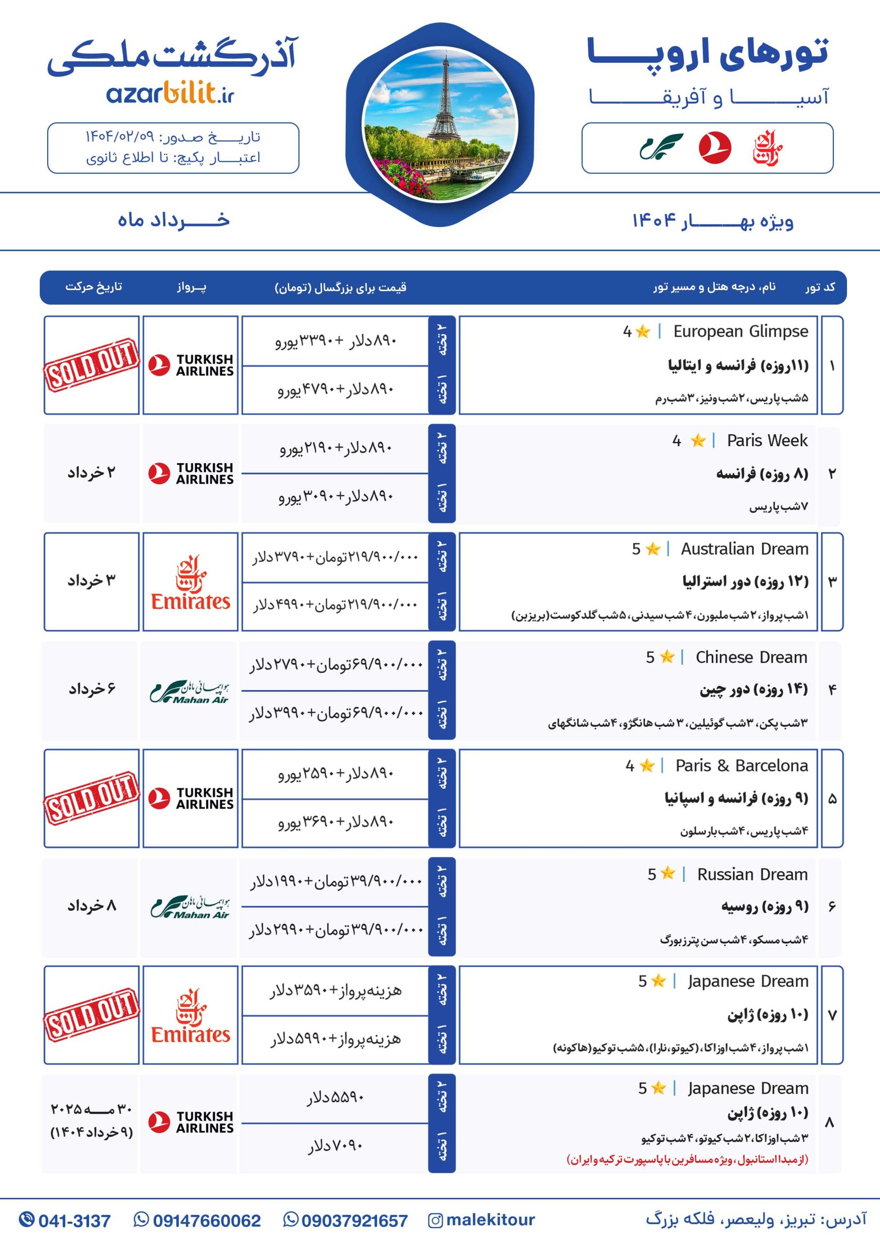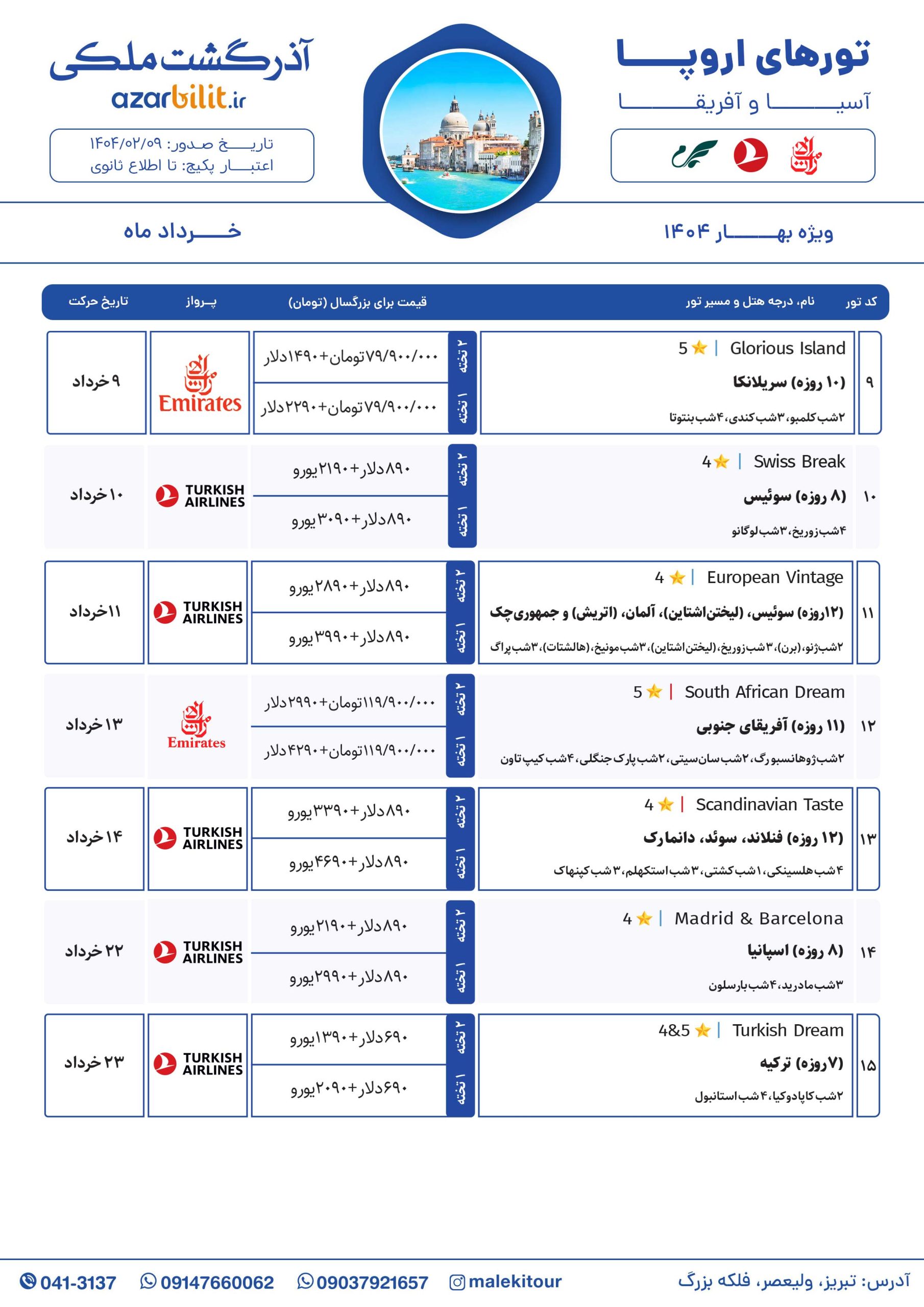 مجله گردشگری آذربلیط - پکیج تور - تور اروپا – ویژه پاییز و زمستان 1404 – پکیج سوم