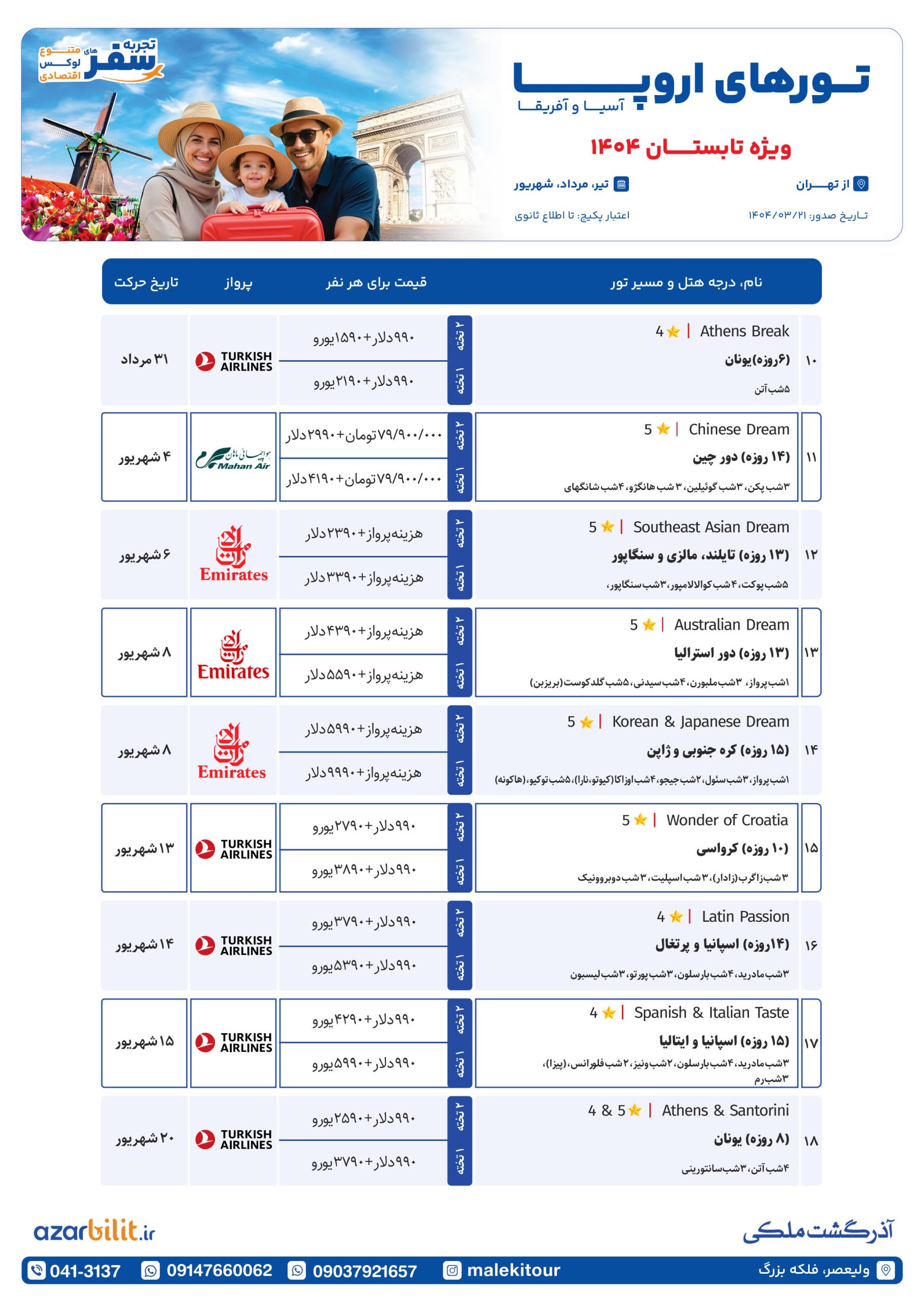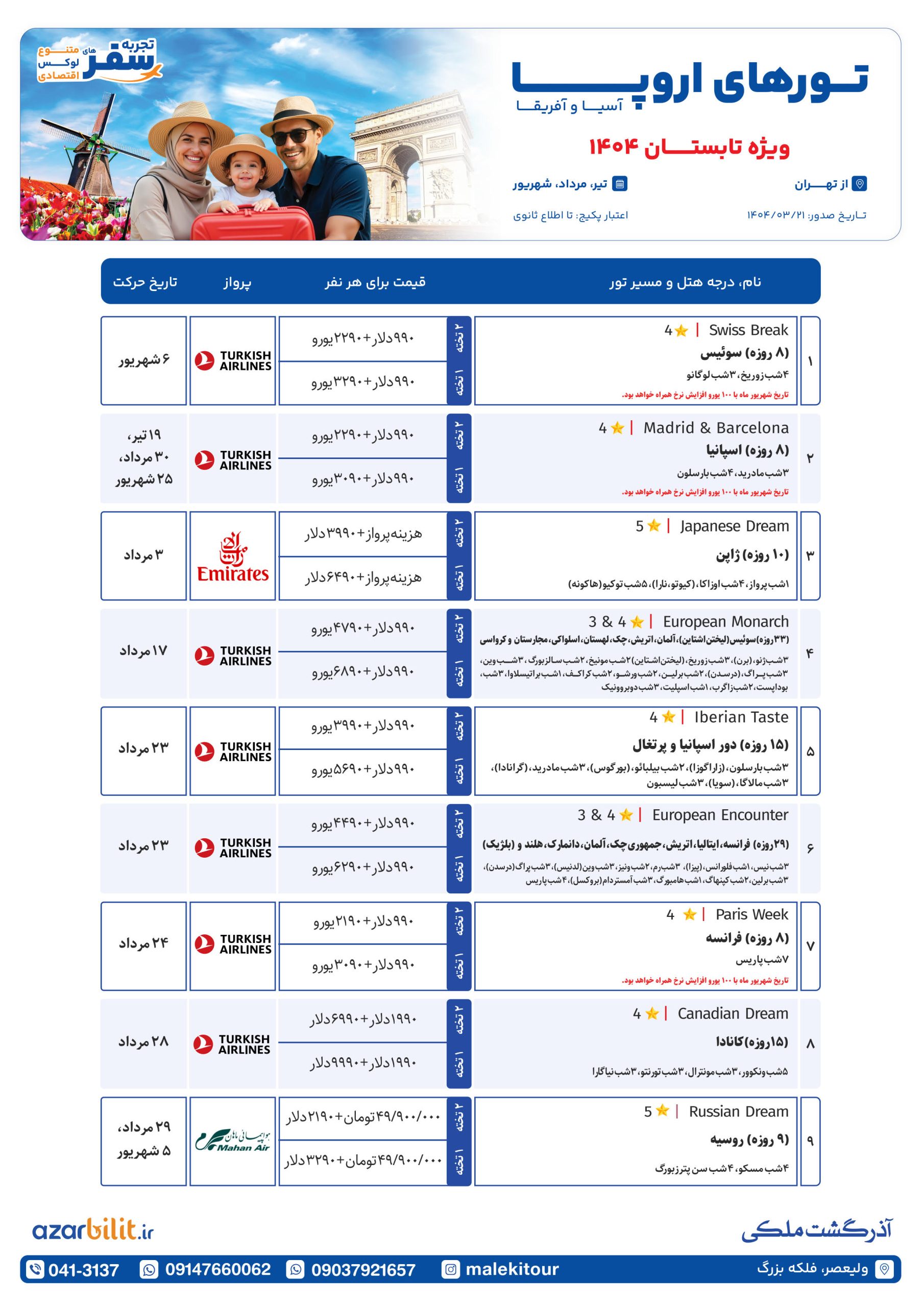 مجله گردشگری آذربلیط - پکیج تور - تور اروپا – ویژه نوروز 1405 – پکیج سوم