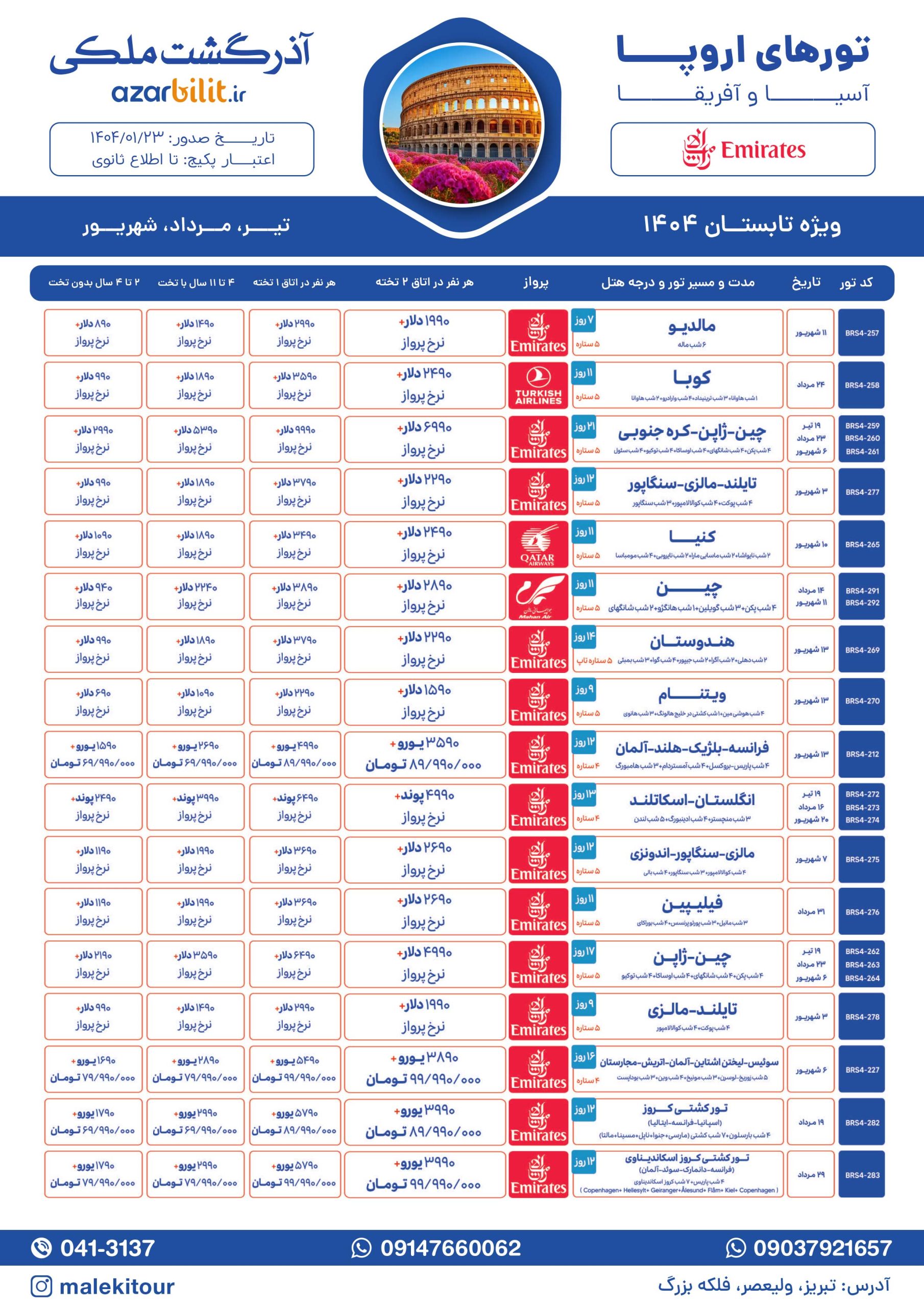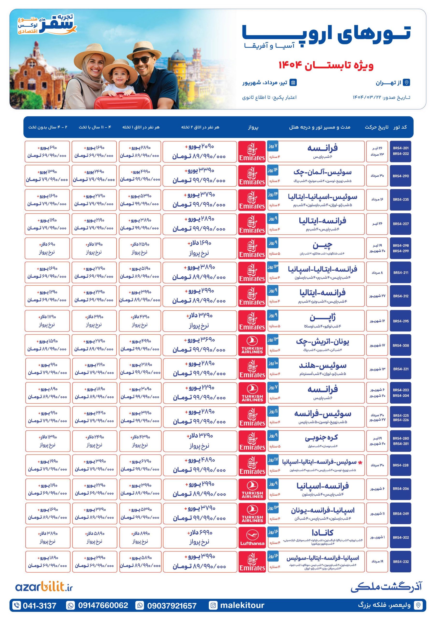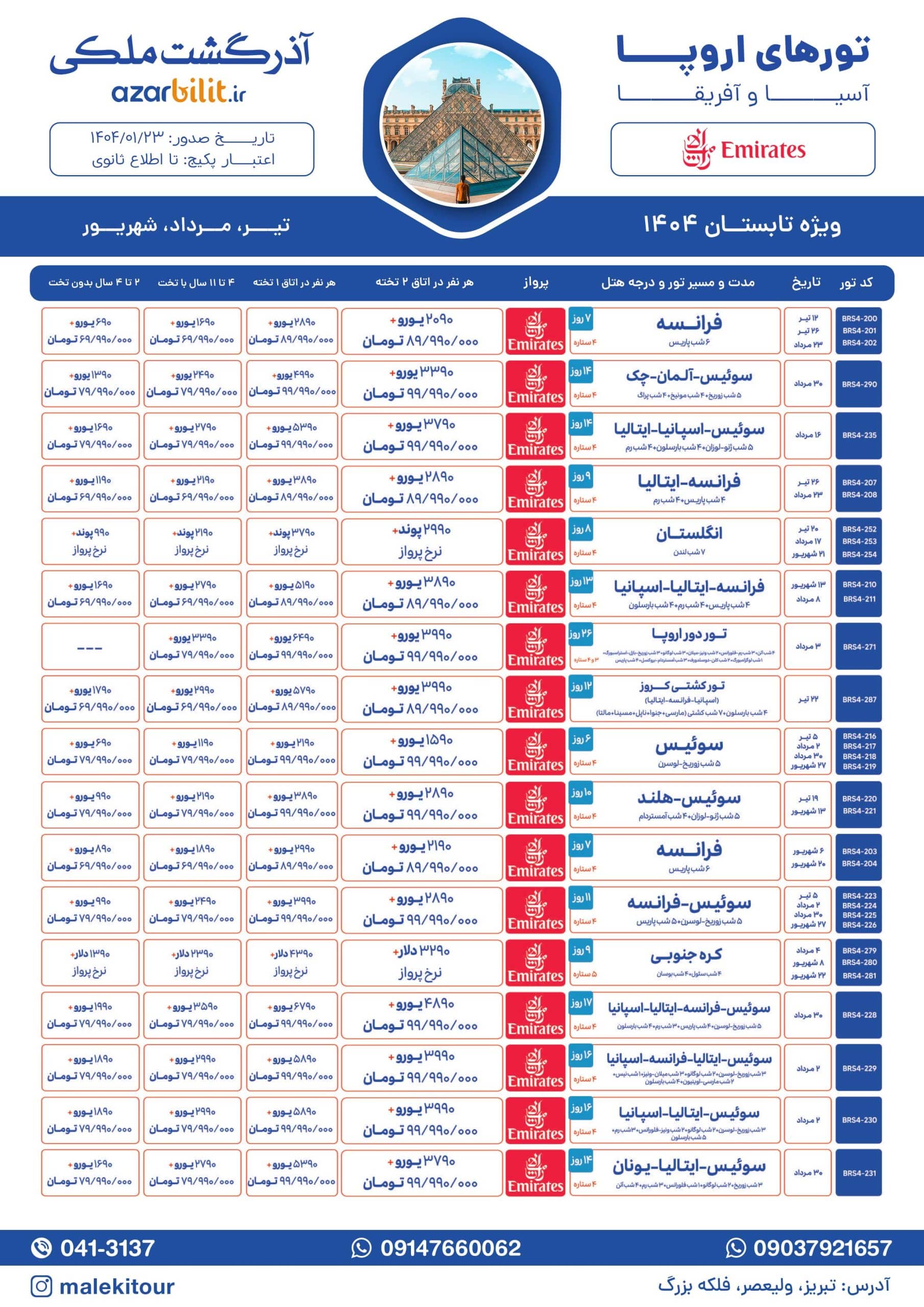 مجله گردشگری آذربلیط - پکیج تور - تور اروپا – ویژه تابستان 1404 – پکیج دوم