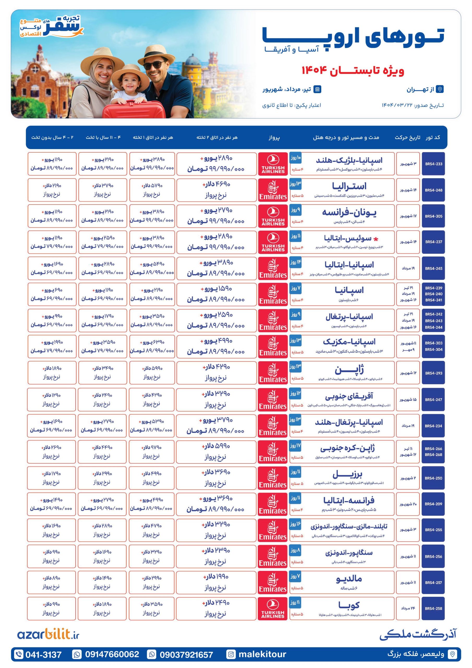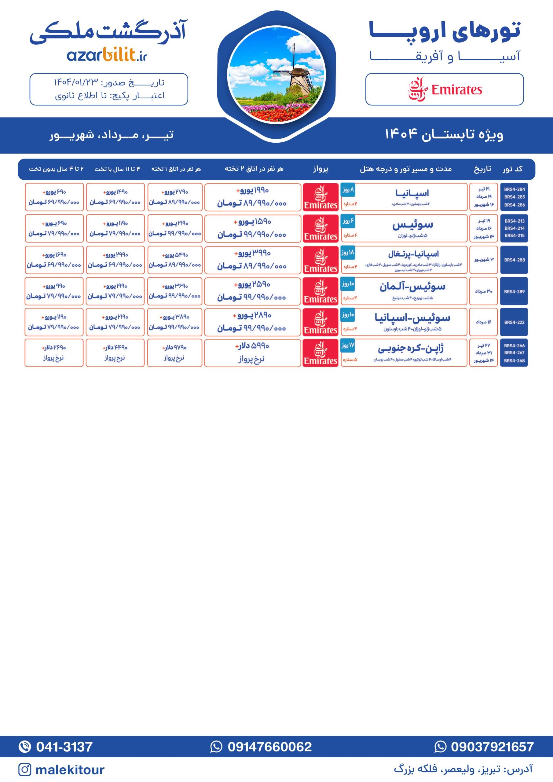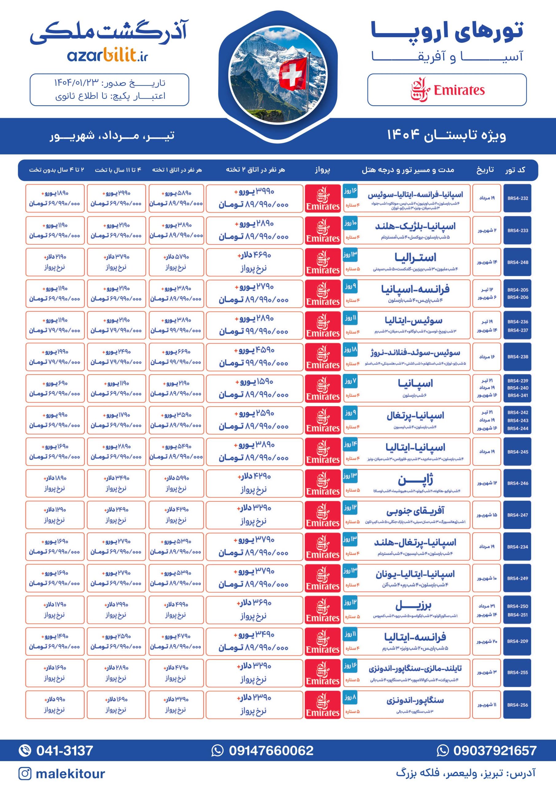 مجله گردشگری آذربلیط - پکیج تور - تور اروپا – ویژه تابستان 1404 – پکیج دوم